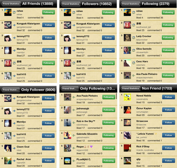 All: é o somatório – “Non Friends” + “Following who don’t follow me” + “Follower